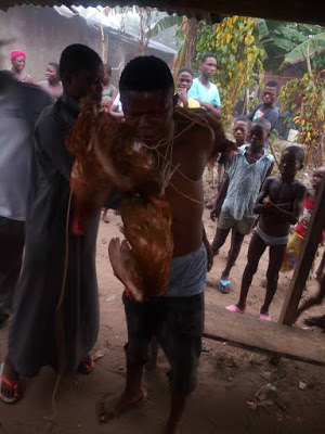 naked, paraded round the streets and had the chickens hung round his neck. More photos after the cut..